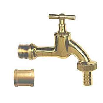 Rubinetto ottone giallo, a vitone con portagomma diametro mm 16, attacco a muro da 1 2 maschio e manicotto scorrevole in dotazione, nella foto già montato